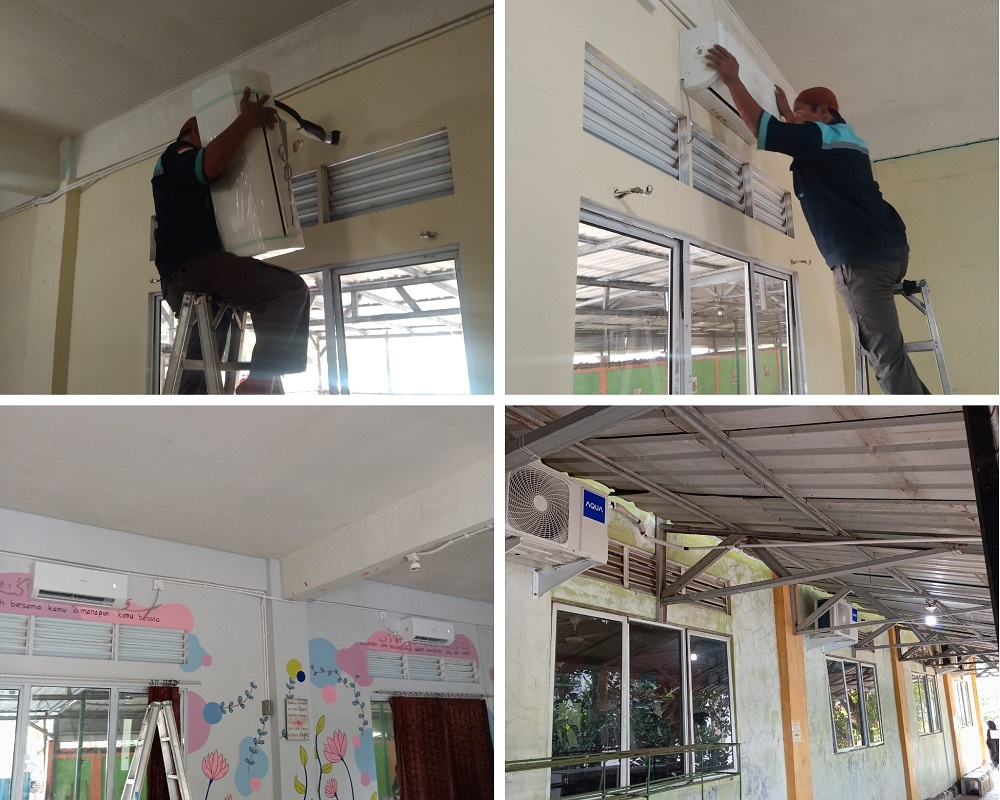 Pengadaan dan pemasangan AC 1 PK sebanyak 12 unit untuk klien sekolah SMP Hidayatullah di daerah Sagulung, Batam